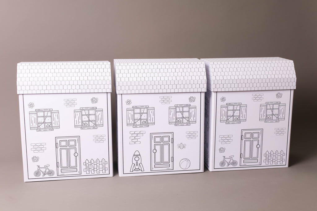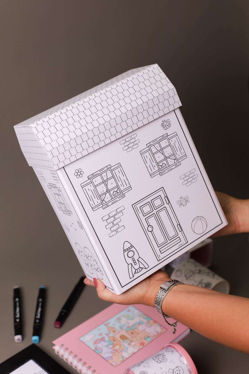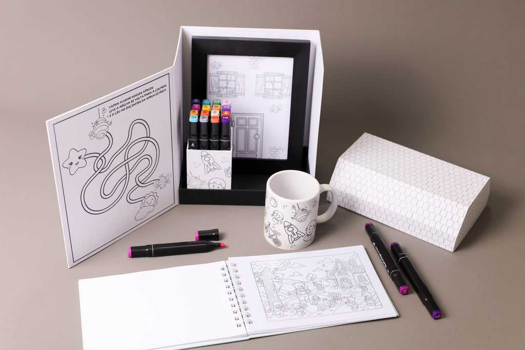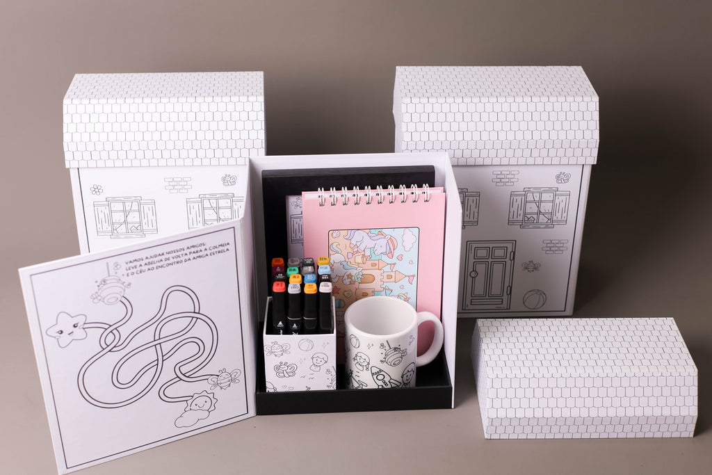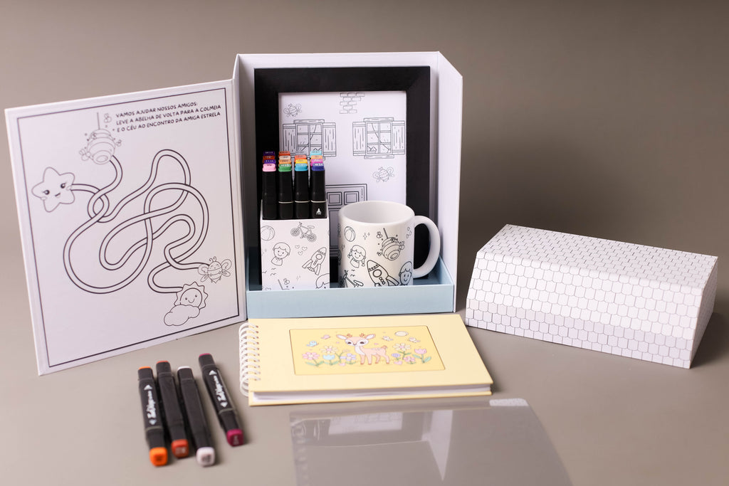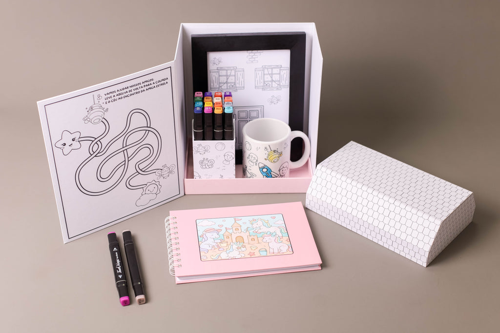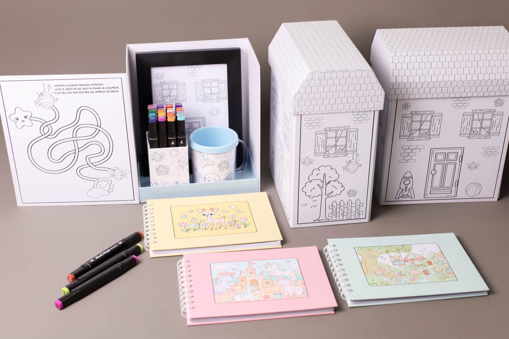 Casinha de cartonagem 100% artesanal feita em papelão corte e vinco, laminada para evitar desbotamento e aumentar a durabilidade. Totalmente personalizada, ideal para 12 canetinhas, 1 porta retrato, livro para colorir com 30 folhas para colorir, ou caneca de porcelana, depois vira porta treco ou enfeite exclusivo e reutilizável.